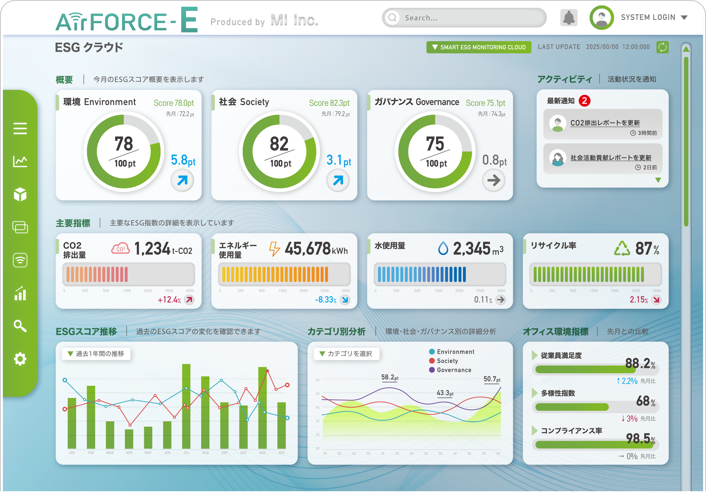設備監視、点検、動態管理、カメラシステム、インフラ監視、さらにはESG対応まで、幅広いニーズに応える柔軟なクラウドソリューションを提供します。