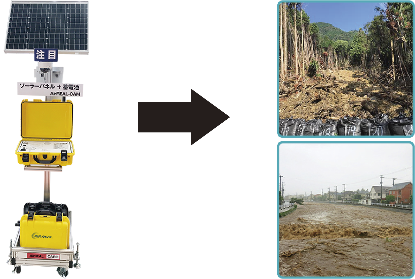 専用架台に太陽光パネルを搭載することにより、電源がない屋外でも運用が可能となります。カメラ監視、工事現場、BCP対策など、あらゆるシーンでご利用可能です。